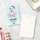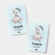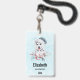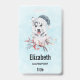 Personalised name badge with a whimsical and cute watercolor painting of a husky dog wearing a blue Santa hat.