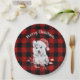 Christmas Husky On Buffalo Plaid Paper Plate