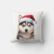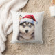 Title: "Santa Paws" Siberian Husky Watercolor Throw Pillow