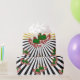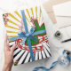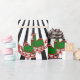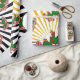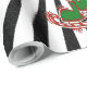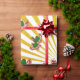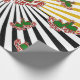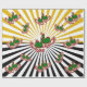 This image is a set of ice skates in Christmas colours of red, green and white. A black and gold arrow with glitter was added to this design. This gift wrap is available in assorted styles, and sizes.
