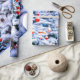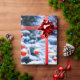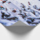 Sparrows and a pigeon by the bird feeder in wintertime. Snow-covered Christmas trees decorated with red, blue balls around. Christmas idyll. One-of-a-kind, unique wrapping paper. You can transfer this design to a large variety of other products, just choose a product from a line hereinunder. Have fun and be happy!