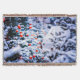 Sparrows and a pigeon by the bird feeder in wintertime. Snow-covered Christmas trees decorated with red, blue balls around. Christmas idyll. One-of-a-kind, unique throw blanket. You can transfer this design to a large variety of other products, just choose a product from a line hereinunder. Use the Customise button and fit/fill option to adjust the image to the product if needed. Just buy one, have fun and be happy!