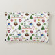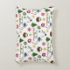Christmas colourful surface pattern design with illustrations of a Christmas pudding, star, baubles, snowflakes, snowman, candy cane, Christmas tree, Christmas gift parcels and stocking.