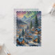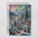This Christmas card features a snow-covered village with brightly lit houses in the mountains, surrounded by tall fir trees, polar lights shining in the sky. Send Christmas greetings to your friends and family. Custom text and back.