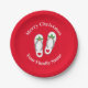 Christmas in July funny holy leaf beach sandals Paper Plate. Add your own surname and greeting. Red or custom colour. Disposable party supplies for garden party, BBQ, family reunion, gathering, dinner etc.