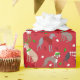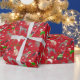 Cute Christmas dogs in festive holiday outfits. Italian Greyhounds with many coat colours wear Santa hats, antlers, sweaters on a red, pink and light blue background with scattered ornaments wrapping paper.