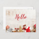 Christmas Items on a Rustic Wooden Board Hello Postcard