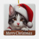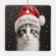 Christmas Japanese Bobtail Cat, Xmas Santa Kitten Ceramic Ornament