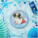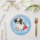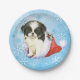 Celebrate the holiday season with a cute Japanese Chin puppy sitting in a Santa hat amid snowflakes. Happy Howlidays!