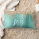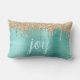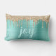 Christmas Joy Glitter Drips Teal Metallic Lumbar Cushion