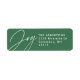 This Christmas card return address label features a modern script Joy along with room for a name and address. Perfect for a variety of holiday cards, this address label is a bright green but also comes in other colours. Send holiday cheer and dress up your holiday envelope with this chic and stylish return address label for your Christmas cards.