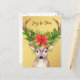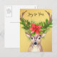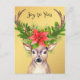 Fun and festive, this holiday post card features a woodland deer watercolor illustration with antlers decorated in beautiful Christmas poinsettia and evergreens. The golden background adds a special holiday glow. Shown with text "Joy to You" that may be edited if you prefer other text.