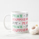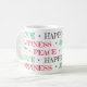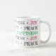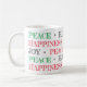 A Christmas design featuring the words “Joy Peace Happiness” in red, green and black.