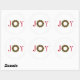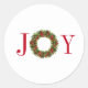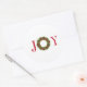 This large round sticker is shown with a festive Christmas wreath print spelled out in Joy.