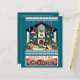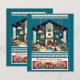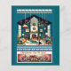 A cosy living room is decorated for Christmas with a warm fireplace and a beautifully adorned tree, surrounded by family and gifts. Festive garlands and candy canes hang from the ceiling, adding to the cheerful atmosphere. A greeting at the bottom wishes "Christmas Joy To You!"