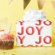 Bright red JOY text for Christmas with snowflakes.