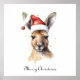 watercolor painting of a kangaroo with a red winter hat in christmas style