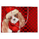 Christmas King Charles Terrier Dog and Red Plaid Large Gift Bag