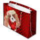 Dog lovers will adore receiving or giving this cute holiday season gift bag, with a cute Cavalier King Charles Spaniel in a red scarf and Santa hat, then paired with a red plaid gradient.