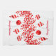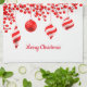This kitchen towel is shown in white with a lovely strand of red and white ornaments hanging from red berries along with red text of Merry Christmas.