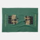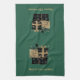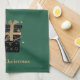 This kitchen towel is shown in custom dark green with a short stack of black and gold coloured Christmas packages along with matte gold coloured text of Merry Christmas.