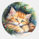 Christmas Kitten Napping under the Tree Classic Round Sticker