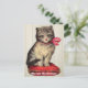 This design features a vintage image of a kitten sitting on a red pillow and wearing a red bow.