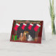 Kitty cats sit in front of the fire with stockings hanging overhead and presents all around waiting for that magical Christmas moment cat lovers holiday greeting card