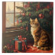 Christmas Kitty at the Window Ceramic Tile