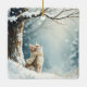 Christmas Kitty Watching Snowflakes Ceramic Ornament