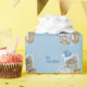 Adorable kitten wearing a blue Santa hat is sitting inside a basket with a blanket. Background is blue with white polka dots. A template is provided for you to put in your child's name or whoever the gift is for. Everyone loves to see their name all over a package! Matching gift tags available in my shop too!
