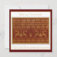 Merry Christmas, gold and dark red. Deers, Christmas trees and snowflakes details from a knitted pullover.