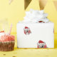 Personlazid design with illustration of cute little koala bear with Santa's hat, Christmas holidays design for children, on red background; with customizble text template