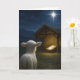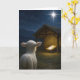 A gentle little lamb gazing lovingly at baby Jesus in a manger, all beneath the glow of a brilliant star.