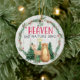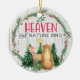 This is a ceramic ornament with a unique, rustic design. It features a tree with a gold star, a deer and bear, and a holly wreath The words " Let Heaven and Nature Ring" are printed in a loopy font at the top of the Christmas ornament. Great gift for christian friends and family.