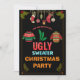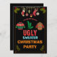 Invite your guests to embrace the spirit of the season with a funny party vibe that encourages everyone to ""eat, drink, and be ugly."" The retro Christmas design elements combined with the modern black theme make this invite a standout choice for those planning a Xmas festive event. From the quirky ""Let's Get Ugly"" tagline to the cheerful depiction of garishly decorated sweaters, every detail of this Christmas party invitation is crafted to bring a smile to your guests' faces and set the mood for a night of fun and laughter.