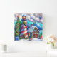 Christmas Lighthouse Nautical Coastal Mountain Square Wall Clock