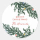 Step into a world of holiday enchantment with this charming Christmas design adorned with a delightful watercolor pine tree branch illuminated by twinkling Christmas lights. The whimsical branch, with its intricate details and warm glow, sets the stage for a truly magical greeting.
