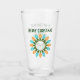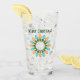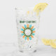 Toast the holiday season with this glass that is embellished on both sides with a Christmas graphic depicting a circle of festive holiday light bulbs in blue and orange along with easy to customise text.