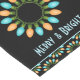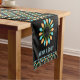 Brighten up your holiday table with this runner featuring easy to customise text and embellished with a graphic pattern of decorative Christmas light bulbs in blue and orange.