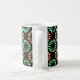This festive mug features a holiday themed pattern composed of circles made up of graphic Christmas light bulbs in colours of red, orange, green and blue.