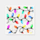 Colorful Christmas string lights with red, orange, yellow, light blue, pink, aqua, and green colors on a black cord in the snow. The retro lights my family used when I was a child inspired me to design this pattern. The snowy background is from an actual photograph. It's shown here on festive paper party napkins that you can customize any way you like. This unique string lights in the snow design is great for any holiday party!