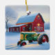 Christmas Lights On a Green Farm Tractor Ceramic Ornament