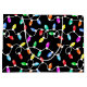 Classic, multi colour Christmas string lights make a festive pattern for the holiday season! These colourful light bulbs are on a white string that slightly twists and turns for a whimsical look. The design pops on a black background colour! You can change the size of the pattern and pick your own background colour for this large gift bag. Add some fun shining lights to your holiday celebration this year!