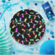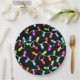 Classic, multi colour Christmas string lights make a festive pattern for the holiday season! These colourful light bulbs are on a white string that slightly twists and turns for a whimsical look. The design pops on a black background colour! You can change the size of the pattern and pick your own background colour for this party paper plate. Add some fun shining lights to your holiday celebration this year!