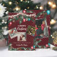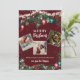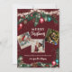 Celebrate the joy of the season with this festive Christmas card featuring a beautiful illustrated pine garland adorned with red and teal ornaments, pinecones, and twinkling lights. This design is perfect for showcasing 4 of your favourite family or pet photos, giving a personal touch to your holiday greetings. The deep red burgundy background contrasts beautifully with the festive elements, creating a cosy and traditional holiday feel. Customise it with your message for a truly unique Christmas card.