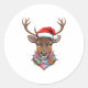 Christmas Lights Reindeer Santa Hat Cute Xmas Paja Classic Round Sticker