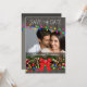 This Save the Date card shows a string of colourful Christmas lights and a bough of evergreen, candy canes and ornaments over woodgrain panels. The design features a cutout opening for inserting your own photo with wedding announcement info on the back. Use the "Customise It" button to personalise with your own text and picture. Matching flat photo Christmas cards, stickers, address labels, postage stamps, ornaments and folded Christmas cards also available. For help or questions, email me at: cheryl@cheryldanielsart.com/contact. Design by Cheryl Daniels © 2013.