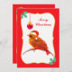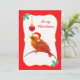 Christmas little bird sitting on a blooming tree branch on white background. Texts can be personalised.