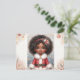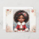 Send warm wishes and festive cheer with this charming Christmas Girl Postcard, featuring an adorable curly-haired dark-skinned child dressed in a red Santa coat trimmed with fluffy white fur. With big expressive eyes, a heart-shaped button at her collar, and a joyful holiday background adorned with soft snowflakes, twinkling lights, and rustic winter foliage, this cutesy design captures the magic of the season.